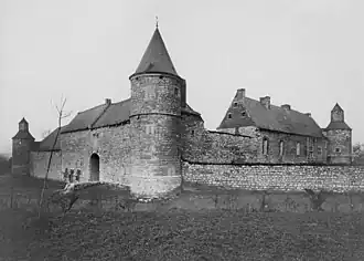 Comme autre indice, il y a des documents qui attestent qu'à la fin du XVe siècle et au début du XVIe siècle le domaine était morcelé et appartenait à plusieurs familles qui payèrent leurs obits avec les revenus de ces terres[5]. Cependant, Edmond Rahir, directeur du Service des fouilles au musée du Cinquantenaire de Bruxelles, qui prit quelques photos du château au début du XXe siècle estime que certains frontons de la construction avaient un aspect roman et provenaient peut-être d'une construction plus ancienne[6]. Jean Jacques est certainement celui qui réunit les parcelles en un ensemble et entreprit la construction d'un château-ferme fortifié[6].