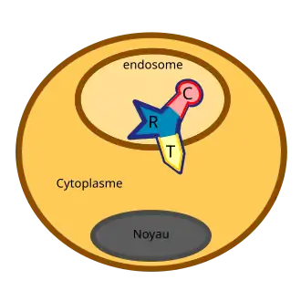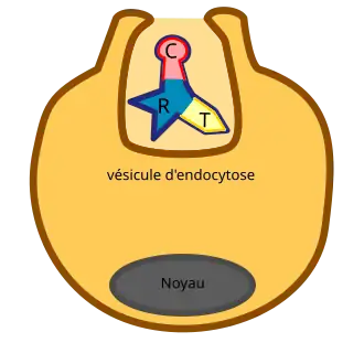 Après interaction avec son récepteur cellulaire, la toxine peut s’introduire dans le récepteur par endocytose.