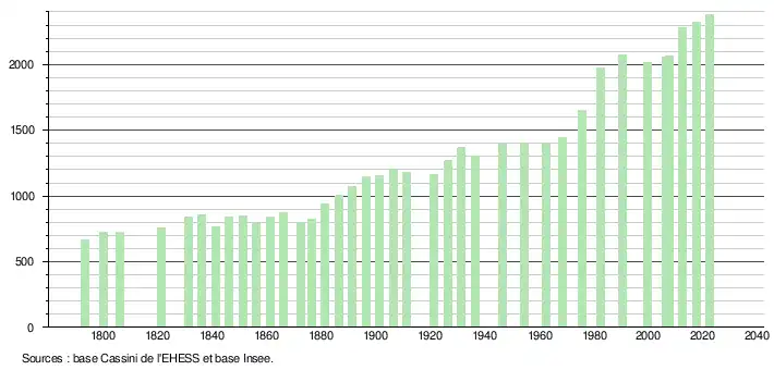 - ↑ Fiches Insee - Populations de référence de la commune pour les années 2006, 2007, 2008, 2009, 2010, 2011, 2012, 2013, 2014, 2015, 2016, 2017, 2018, 2019, 2020, 2021 et 2022.