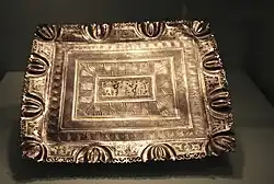 Une autre pièce très élaborée du trésor est ce qu'on appelle le plateau d'Ariane, un plateau en argent avec 13 représentations figuratives plus ou moins différentes sur le bord. L'image du centre montre le dieu du vin Dionysos, sa femme Ariane, une panthère[2]. Les représentations du bord et de l'image centrale sont encadrées par des motifs géométriques.