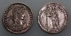 Magnence, lors de son usurpation, réussit à éliminer l'un des trois fils de Constantin le Grand, Constant Ier, et gouverne brièvement la partie occidentale de l'empire. Le commandant susmentionné aurait servi sous Constant puis aurait fait défection en faveur de Magnence. Les pièces de l'époque de Constance et la plaque décennale de Constance le prouveraient.