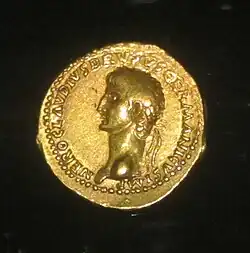 | Claude, après 50 ap. J.-C. | ![]() | TI CLAVD CAESAR AVG GERM P M TRIB POT P P | Buste de Néron | NERO CLAVD CAESAR DRVSVS GERM PRINC IVVENT Néron en prince de la jeunesse |