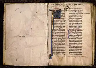 - Entre 1230 et 1260 circule une traduction en francien, qu'on appelle aujourd'hui la Bible du XIIIe siècle[7]. Cette compilation de traductions et de commentaires est une œuvre collective, la première Bible en prose, dont les quelques manuscrits anciens qui nous sont parvenus sont incomplets[8].