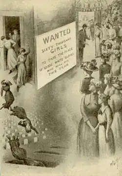 À l'échelle nationale, le gouvernement fédéral réagit : en 1910, le Congrès des États-Unis adopte le Mann Act, qui érige en délit pénal grave l'acte de transporter des femmes entre plusieurs États aux fins de « prostitution, débauche ou autres buts immoraux »[6]. L'objectif premier de la loi vise à régler le problème de la prostitution, de l'immoralité et de la traite des êtres humains, surtout quand celle-ci s'inscrit dans la prostitution. Toutefois, selon certains auteurs, cette législation exclut les victimes qui n'étaient pas de jeunes femmes blanches : les femmes de couleur sont souvent critiquées, arrêtées et incarcérées[8].