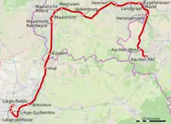 De la gare centrale d'Aix-la-Chapelle à la gare de Rolduc, le train utilise une partie de la ligne ferroviaire Aix-la-Chapelle - Cassel, entre Rolduc et Heerlen la ligne ferroviaire Sittard - Rolduc, entre Heerlen et Schin op Geul la ligne ferroviaire Heerlen - Schin op Geul, et entre Schin op Geul et Maastricht la ligne Aix-la-Chapelle - Maastricht.