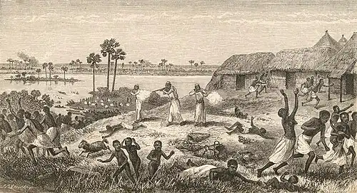 Razzia d'esclavagistes « Arabo-Swahilis » dans un village de la région de Nyangwe.