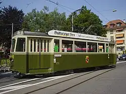 145BernmobilMusée du tramway de BerneUtilisé jusqu'en par Loeb SA (de) pour le Märlitram (de). Est utilisé comme Fondue-Tram en hiver.