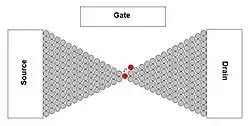 Par conséquent, le transistor à atome unique fonctionne comme un commutateur ou un relais atomique, où l'atome commutable ouvre et ferme l'espace entre deux minuscules électrodes appelées source et drain[2],[3],[4]. Le transistor à un seul atome ouvre des perspectives pour le développement des futures logiques à l'échelle atomique et de l'électronique quantique.