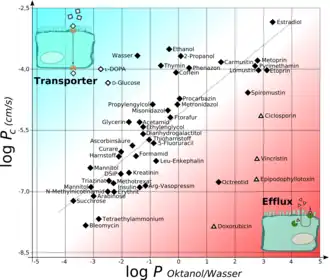 - ↑ (en) H. Fischer, R. Gottschlich et A. Seelig, « Blood–brain barrier permeation: molecular parameters governing passive diffusion. », J. Membr. Biol., vol. 165, , p. 201–211 (PMID 9767674)