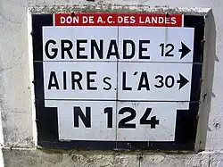 | Route nationale 649 | Sabres | Mont-de-Marsan | Grenade-sur-l'Adour | Renommée RN 134 jusqu'à Mont-de-Marsan et RN 124 au-delà en 1972, puis déclassée en 2006, respectivement en RD 834 et RD 824. |