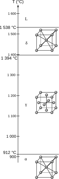 À basse température, l'acier est biphasé à l'état stable : il est composé de cristaux de fer avec du carbone en solution solide (structure ferritique ou α), et de cristaux de carbures de fer Fe3C. L'acier présente une transformation allotropique : il est cubique centré à basse température (ferrite α) et cubique à faces centrées à haute température (structure austénitique ou γ). Cette température de transformation dépend de la teneur en carbone ; ceci est représenté par la ligne A3 du diagramme binaire fer-carbone. La trempe des aciers comporte donc un chauffage jusqu’au-delà de la température d'austénitisation, un maintien à cette température pendant le temps nécessaire à la transformation de toute la masse suivi d'un refroidissement à une température déterminée en vue d'éviter le retour à une structure d'équilibre.