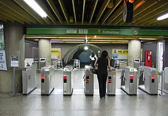 Um Espelho Mágico da Pintura no Brasil, de Wesley Duke Lee en 2001, est composée de deux panneaux recouverts d'une toile en vinyle de 2 m par 40 m par recouverte d'éléments numérisé, chrome et infographie. Elle est installée sur les deux quais latéraux[2] ;
