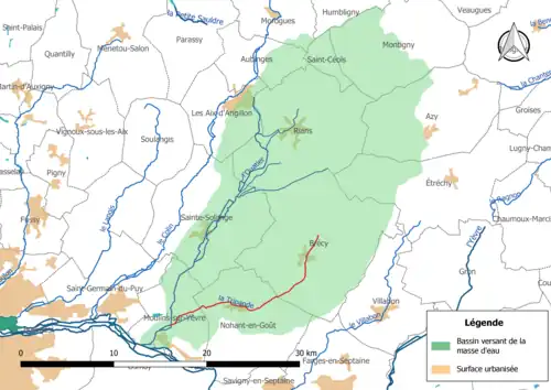 | Sources : SANDRE:« Fiche cours d'eau (K5555500) », Géoportail | |