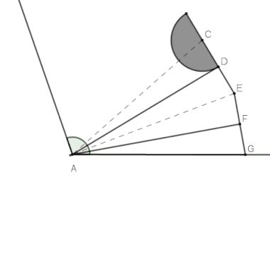 Si le sommet de l'angle est étiqueté A, le point de tangence de la lame est B, le centre du demi-cercle est C, le haut du manche est D et la pointe est E, alors les triangles △ACD et △ADE sont deux triangles rectangles ayant une base commune et une hauteur égale, ce sont donc des triangles égaux . Parce que les côtés AB et BC du triangle △ABC sont respectivement une tangente et un rayon du demi-cercle, ils sont perpendiculaires l'un à l'autre et △ABC est aussi un triangle rectangle ; il a la même hypoténuse que △ACD et les mêmes longueurs de côté BC = CD, donc encore une fois il est égal aux deux autres triangles, montrant que les trois angles formés au sommet sont égaux[5],[6].