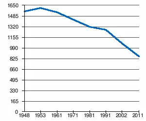 | 1 565 | 1 608 | 1 546 | 1 425 | 1 318 | 1 272 | 1 060[2] | 856[1] |