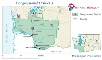 Le 3e district congressionnel de Washington englobe la partie la plus méridionale de l'ouest de Washington. Il comprend les comtés de Lewis, Pacific, Wahkiakum, Cowlitz, Clark et Skamania, ainsi qu'une petite partie du sud du Comté de Thurston.