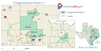 Le 3e district congressionnel du Texas se trouve dans les zones suburbaines au nord et au nord-est de Dallas. Il englobe une grande partie du Comté de Collin, notamment McKinney et Allen, ainsi que des parties de Plano, Frisco et Prosper. De plus, le district comprend tout le Comté de Hunt, sauf la partie sud. Le district abrite également une université publique de quatre ans, la Texas A&M University-Commerce, ainsi que le Collin College.