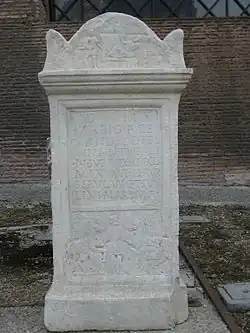 Malgré cela, le service comme auxiliaire restait attractif pour les peuples non romains de l'Empire, car il permettait d'acquérir en fin de service le prestigieux titre de citoyen romain. Ce processus n'était cependant pas automatique, et bénéficiait essentiellement aux élites (à l'instar de Lusius Quietus, d'origine maure et qui, après avoir dirigé une vexillatio exclusivement composée de Maures, devint gouverneur de Judée, ou encore de Caius Julius Arminius, le chef des Chérusques)[15]. Le recrutement était ainsi parfois contraint, comme le montrent les révoltes en Mauritanie[15]. Sous l'Empire, la citoyenneté était accordée après 25 ans de service. À certaines périodes, elle était aussi donnée à l'épouse et aux enfants. Le diplôme militaire, composé de deux petites tablettes de bronze identiques et portant la constitution impériale attribuant la citoyenneté au soldat, lui permettait de prouver par la suite sa citoyenneté. Plusieurs centaines de ces diplômes ont été retrouvés, livrant d'importantes informations sur les auxiliaires. Cet avantage du service auxiliaire s'effaça progressivement, après l'Édit de Caracalla (212) généralisant la citoyenneté romaine[16]. Bien avant 212 cependant, il existait quelques unités auxiliaires formées dès le départ uniquement avec des citoyens, les cohortes voluntariorum. De façon générale, après l'édit de Caracalla, les régiments auxiliaires sont presque intégralement formés de citoyens, seuls les troupes de la marine ou certaines unités spéciales, telles celles de la garde prétorienne, demeurent formées d'étrangers. Nombre des citoyens membres de l'armée sont toutefois fraîchement, bien qu'effectivement, romanisés : ils pratiquent ainsi des cultes locaux, écrivent un latin appris, etc. Le commandant de la garnison de Bu Njem, en 212, était ainsi nommé Marcus Portius Iasucthan, mais écrivit un dithyrambique en latin en éloge de la IIIe légion[17].
