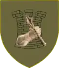 Emblème des tankistes ukrainiens depuis 2016 : un gantelet d'acier tenant une masse d'armes. | |