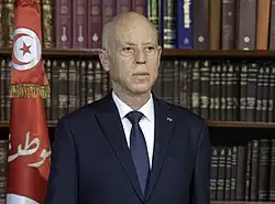 En 1987, il est déposé par le Premier ministre Zine el-Abidine Ben Ali, qui poursuit les principaux objectifs du « bourguibisme » tout en libéralisant l'économie mais exerce une présidence autoritaire et policière, caractérisée par l'importance de la corruption[14],[15]. Ben Ali est chassé le par une révolution populaire et se réfugie en Arabie saoudite, à Djeddah[16],[17] sous le coup, avec son épouse Leïla Ben Ali, d'un mandat d'arrêt international.