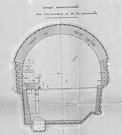 «Le souterrain de Liverdun, dont la longueur est de 400 mètres, est percé dans toute son étendue. La voûte est déjà construite sur une longueur de 100 mètres, et les cintres sont posés sur une longueur de 70 mètres. Les tranchées aux abords sont achevées, et, quoique cet ouvrage important ait présenté d'assez graves difficultés, on espère pouvoir le terminer dans la campagne de 1841[2].»
