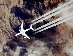 Toutefois, la pollution aérienne en haute altitude pourrait avoir bien plus d'impact sur l'environnement et notamment sur l'amincissement de la couche d'ozone. En effet, 75 % des émissions des turboréacteurs ont lieu en vol de croisière dans la troposphère et la basse stratosphère[44].