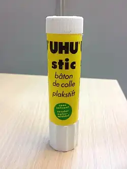 UHU est une entreprise allemande produisant de la colle, principalement sous forme de bâtons et de tubes destinés à l'usage domestique.