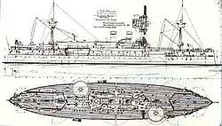 L'USS Maine était le second cuirassé de l'United States Navy à son lancement en 1895[1]. Initialement classé en tant que croiseur cuirassé, il fut construit en réponse au cuirassé brésilien Riachuelo (en) et à l'accroissement des forces navales sud-américaines. L'USS Maine et son presque jumeau, l'USS Texas, reflétaient les derniers développements de la construction navale européenne et la disposition de leur armement principal ressemblait à celle du cuirassé britannique HMS Inflexible. Ses deux tourelles étaient disposées en échelon sur un sponson de chaque côté du navire avec des ouvertures dans la superstructure pour permettre les tirs en travers du pont.
