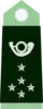 - tricorne, de teinte « vert forestier », à cor de chasse brodé « argent ».