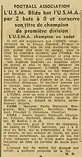 | 4e tour qualificatif pour la Coupe d'AFN | USM Blida | 2 – 1ap | MC Alger | ||
