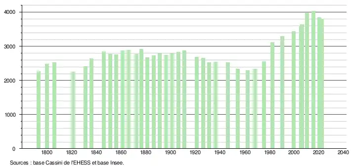 - ↑ Fiches Insee - Populations de référence de la commune pour les années 2006, 2007, 2008, 2009, 2010, 2011, 2012, 2013, 2014, 2015, 2016, 2017, 2018, 2019, 2020, 2021 et 2022.