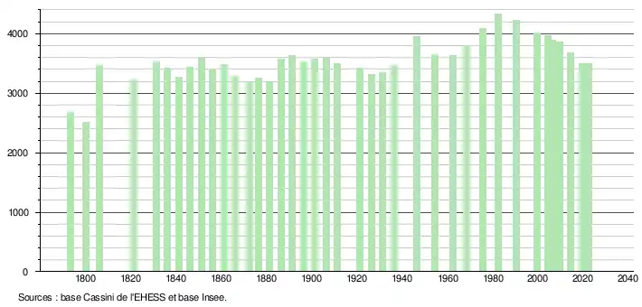 - ↑ Fiches Insee - Populations de référence de la commune pour les années 2006, 2007, 2008, 2009, 2010, 2011, 2012, 2013, 2014, 2015, 2016, 2017, 2018, 2019, 2020, 2021 et 2022.