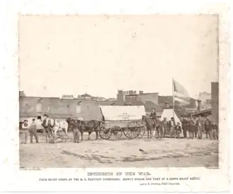 C'est dans ce contexte que fut également créée, à New-York, à la fin du mois d'avril et à l'initiative du Dr Elizabeth Blackwell (première femme à recevoir un diplôme de médecine sur le territoire des États-Unis), la Women's Central Association of Relief[2], l'association féminine qui allait tout à la fois donner naissance à la U.S. Sanitary Commission et être un de ses principaux auxiliaires tout au long du conflit. Répondant à l'appel signé par « quatre-vingt-douze dames parmi les plus connues et les plus influentes de New York », de très nombreuses femmes se mirent au service de l'association, dont la direction fut confiée, signe des temps, à un bureau et à un exécutif exclusivement masculins[3],[4],[5].