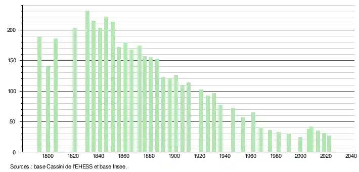 - ↑ Fiches Insee - Populations de référence de la commune pour les années 2006, 2007, 2008, 2009, 2010, 2011, 2012, 2013, 2014, 2015, 2016, 2017, 2018, 2019, 2020, 2021 et 2022.