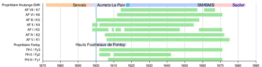 En 1904, la majorité de l'usine de Fontoy est rachetée par l'usine de La Paix[SF 2]. Mais, en 1906, l'état allemand refuse la fusion[6]. Ce n'est qu'en 1917, lorsque le capital de l'usine de Knutange passe sous contrôle allemand, que la fusion est réalisée[5].
