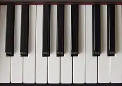 do/ré/mi/fa/sol/la/si/do sur les touches blanches du clavier d'un piano