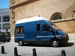 Véhicule de Mobilité Équipe (VME), en remplacement des Iveco Daily. Première livraison au début de . 3 véhicules par peloton d'intervention, pouvant transporter 6 gendarmes[15]. Avec nouvelle sérigraphie. | |