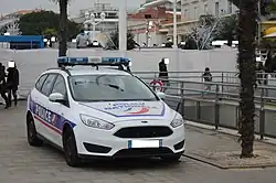 Depuis 2007, la police est équipée de véhicules avec une sérigraphie plus moderne. Une ligne bleue traverse le véhicule horizontalement puis remonte vers le phare arrière, avec le logo de la police écrit dessus. Une ligne rouge longe cette ligne bleue. Au centre du liseré bleu longeant la bordure entre le capot et le reste de la carrosserie, il est inscrit « Police nationale » en majuscule, avec en dessous le logo. À l'arrière, la moitié du coffre est bleu, avec écrit « Police » en majuscule et une icône indiquant le 17, numéro d'urgence de la police[10].