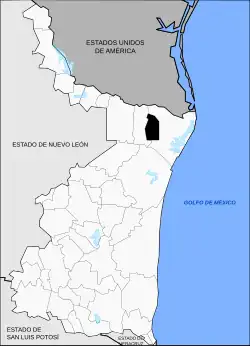 Cette municipalité dépend de la région Norte, appelée aussi Región Fronteriza, qui est une des 6 subdivisions administratives de l'État de Tamaulipas, et regroupe les municipalités de Nuevo Laredo, Guerrero, Mier, Miguel Alemán, Camargo, Gustavo Díaz Ordaz, Reynosa, Río Bravo, Valle Hermoso et Matamoros[5].