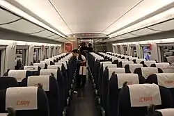 Le CRH3 mesure 3,26 mètres de large, ce qui permet de placer 2+2 sièges en première classe, et 2+3 en seconde, offrant un total de 600 places dans huit voitures.