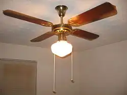 Un ventilateur de plafond (ou ventilateur plafonnier ou brasseur d'air) est un appareil comprenant des pales de ventilateur couplées à un moyeu connecté à un arbre d'entraînement mis en rotation par un moteur alimenté électriquement et suspendu à un plafond d'une pièce. Il comporte plusieurs vitesses, entre 1 et 6, tourne plus lentement qu'un ventilateur de bureau électrique ou qu'un brasseur d'air professionnel, il brasse une quantité d'air qui permet plus ou moins de rafraîchir par évaporation les personnes dans la pièce. À l'inverse des équipements de climatisation plus efficaces, il ne peut pas refroidir l'air mais utilise moins d'énergie électrique qu'eux.