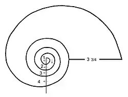 Le nombre de spires de la coquille adulte d'une espèce donnée dépend de facteurs mathématiques de la croissance géométrique. Le facteur principal est la rapidité avec laquelle le tube conique se dilate (ou s'évase) avec le temps. Lorsque le taux d'expansion est faible, chaque tour n'est pas beaucoup plus large que le précédent et la coquille adulte a de nombreux verticilles. Lorsque les facteurs mathématiques gouvernant la croissance causent une expansion très rapide de la largeur du tube, la coque de l'adulte a très peu de verticilles.