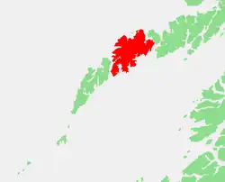 Vestvågøya est située entre les îles de Flakstad, à l'est, et de Gims, à l'ouest.