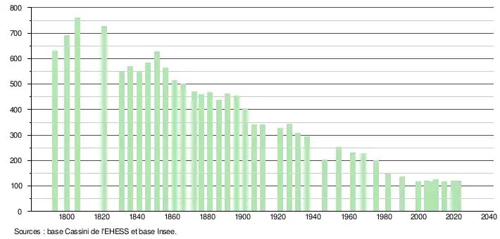 - ↑ Des villages de Cassini aux communes d'aujourd'hui sur le site de l'École des hautes études en sciences sociales.