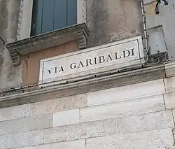 En 1866, après l'entrée des troupes de Garibaldi à Venise, la rue fut dédiée à Giuseppe Garibaldi, à qui fut érigé plus tard le monument à l'entrée des Jardins[2].