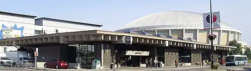 Cet unique édicule comporte deux sorties. Une vers la Rue Pierre-de-Coubertin et l'autre vers le Cinéma Star-Cité et le Parc Olympique.