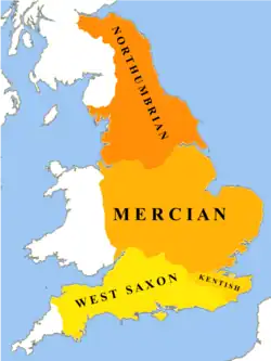 - ↑ (en) Terry Hoad, « Dialects », dans Michael Lapidge, John Blair, Simon Keynes et Donald Scragg (éd.), The Wiley Blackwell Encyclopedia of Anglo-Saxon England, Wiley Blackwell, , 2e éd. (ISBN 978-0-470-65632-7), p. 143-144