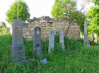 Les pierres tombales, pour la plupart en forme de stèles, datent de la première moitié et du milieu du XIXe siècle et sont constituées de grès[2] ; certaines d'entre elles, notamment celles qui prennent la forme d'un pied surmonté d'une sorte de chapeau, sont partiellement endommagées[2].