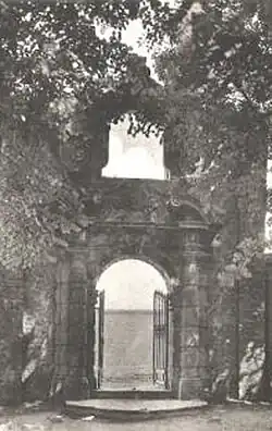 - 1901 : le mur d'enceinte arrière est percé et accueille le portail baroque démantelé de la porte latérale de la collégiale. La ruelle traversant le Vieux Cimetière et faisant la jonction entre la rue Henri Leroy (jadis rue du Nouvel âtre) et la rue du rempart est obturée.