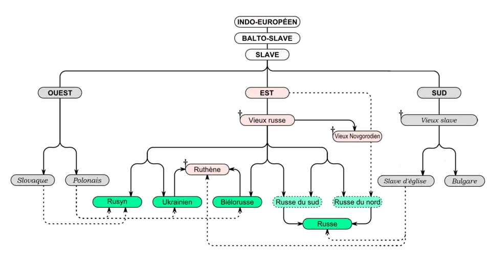 | Langues filles | russe, ruthène, biélorusse, ukrainien, rusyn |